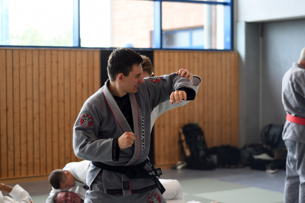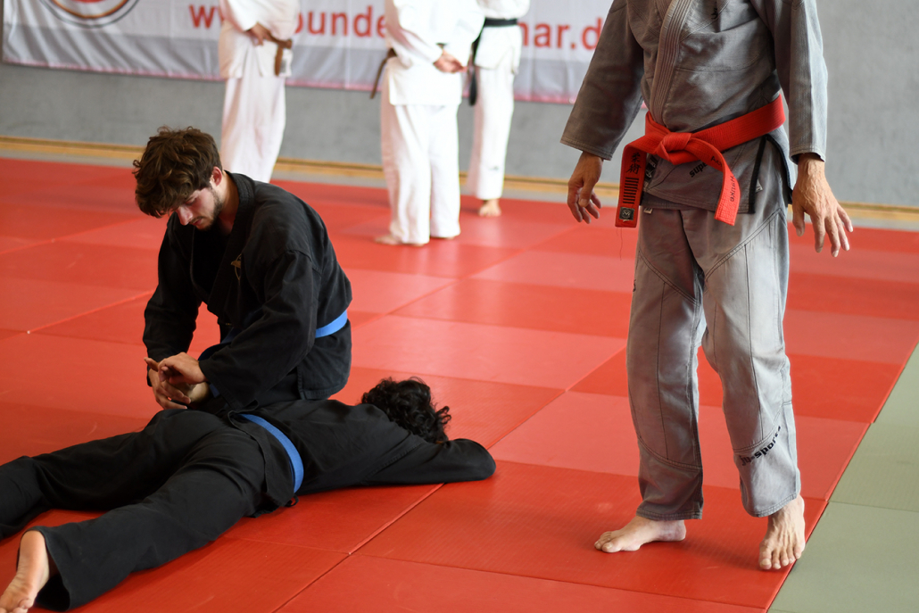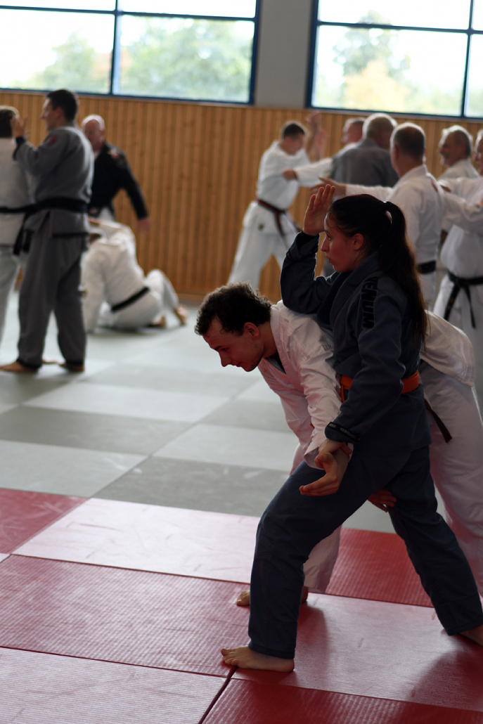 Der Schwerpunkt des Wochenendes lag auf dem Jiu-Jitsu als vielseitiger Selbstverteidigungskunst. Blocktechniken, Schläge, Tritte, Würfe, Hebel und Bodenkampf wurden in unterschiedlichen Szenarien geübt und so praxisnah vermittelt, dass alle Beteiligten wertvolle Inhalte mit nach Hause nahmen. Der Austausch unter den Teilnehmenden sowie das gemeinsame Abendessen am Samstag rundeten das Programm ab und stärkten das Gemeinschaftsgefühl innerhalb der großen Jiu-Jitsu-Familie.